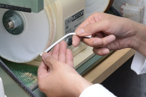 特に変色が目立つ箇所に関しては、下磨き用のバフに当て、その後仕上げ用のバフで磨き直します。