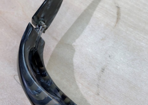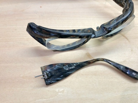 右のテンプルのバネが完全に切れてしまい、日常使いができない状態に、、