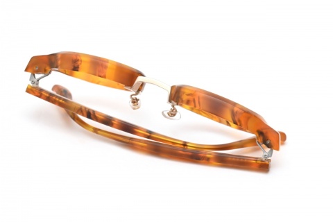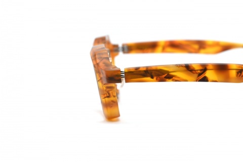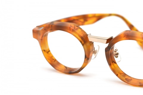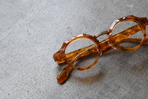 そもそも「RF-053」の造形とマット加工の相性の良さはいうまでもありませんが、肉厚なフロントリムを支えるメタルパーツ(ブリッジ)もマットカラーになっていることもあり、アセテートとメタルパーツとの一体感が生まれます。