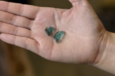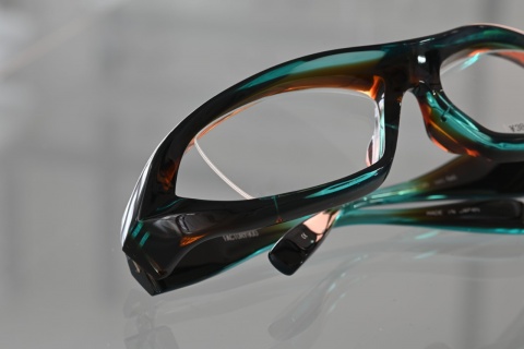 「col.565」茶とグリーンが貼り合わせあり、本来、パッド部の色合いと合わせるのであれば、茶色を共色として合わせるところですが、今回はあえてグリーンにて、別注のパッドを製作してみました。