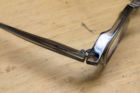 「RF-034」は、フロントリムに厚みの強弱をつけ、ブリッジにも凹凸があり、さらに前面にも面カットを施すなど、細部の磨きは手間がかかりますが、心配していた黄ばみもキレイに落とすことができました!
