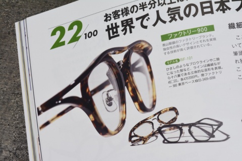 メガネの専門誌だけでなく、こういったライフスタイル誌やファッション誌にてご紹介いただけたりと、少しづつですが雑誌やメディアなどFACTORY900を目にする機会は5年前に比べ着実に増えてきました。