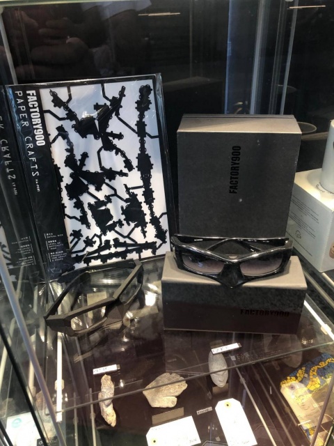 ショーケースの中には、世界各国のデザインプロダクトに交じり、FACTORY900の代表作である「FA-081」MASK 、そして昨年秋に発表されたペーパークラフト「FA-P081」が陳列されています。
