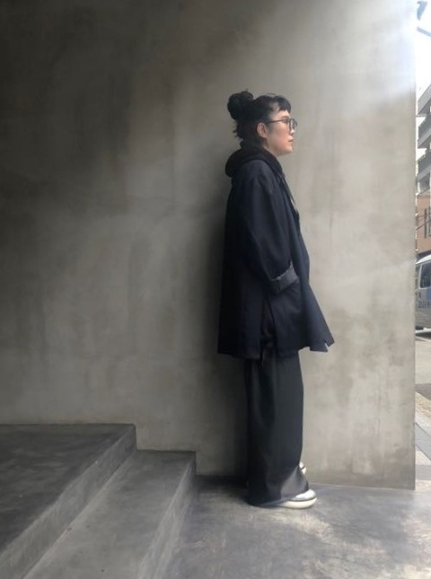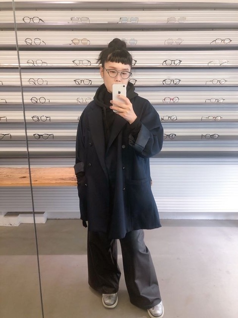 上の写真は、よりかっこよく合わせるために、オーバーサイズの紺のジャケットを着ました。紺ブレっぽく。