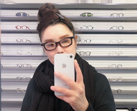 眼鏡ライターの伊藤美鈴さんも書かれていて、それを受け、スタッフブログでもたびたび登場している、細長いスクエア型の「ベヨネッタ眼鏡」がトレンドアイテムとして急浮上!