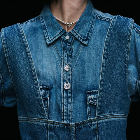 リラクシーなデニムにパールを組み合わせたもの。元々「デニムをアップデートするためにラグジュアリーなパールを組み合わせる」ことを提案されていたとのことでしたが、2024年は春夏に続き秋冬にかけても、「デニムonデニム」が主流のトレンドになることから、気負わずにリラックスしたムードでつけることができるとのこと。