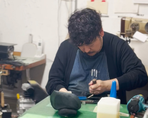 一つ一つ丁寧に、滑らかに。革がスルスルと靴として形になっていく様子は、一日中見ていられるほど楽しかったです。眼鏡もそうですが、職人さんの手捌きが、手の動きが本当に美しいんですよね。一点を見つめ集中しながらも、おそらく出来上がりの完成も浮かんでいると思うのですが、その創造力がすごいなと感動してしまいます。