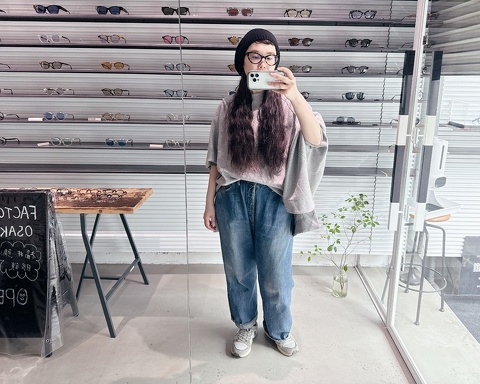 黒いセルフレームをかけるだけでも、ぜんぜん違う。ナチュラルメイクでも全く問題ないのだ。眼鏡のパワー恐るべし。もちろん眼鏡のデザインももちろん影響はしてくるとは思うので、そのあたりは接客員に要相談!