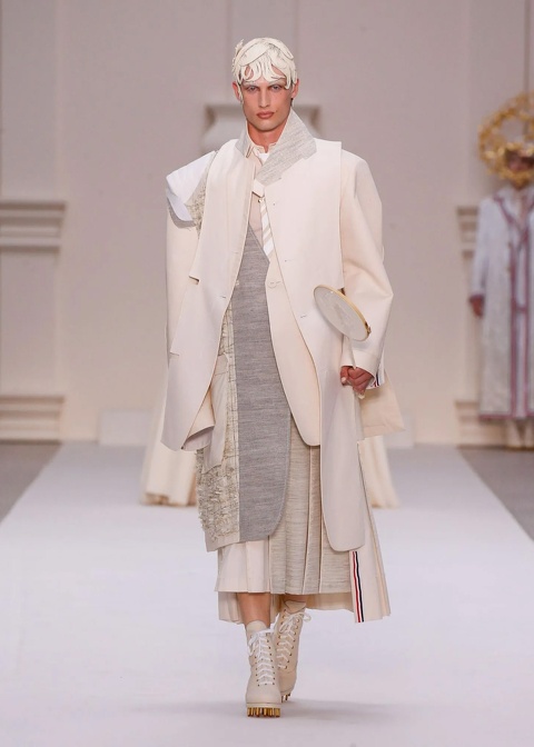 制作過程、一連のプロセスなど、そういったものにフューチャーされているものもここ最近多く見かけます。久しぶりにパリはクチュールに戻ってきた「トム・ブラウン」のクチュールコレクション。制作過程に光を当てたショーだったようです。