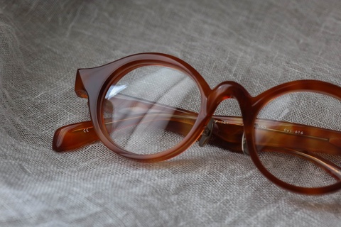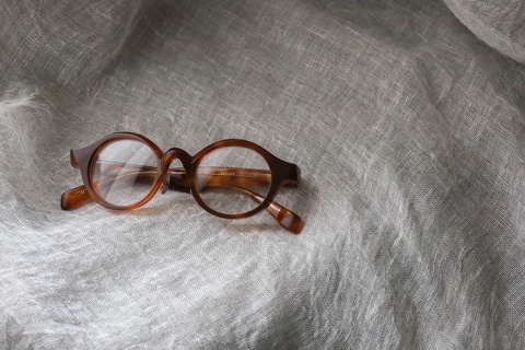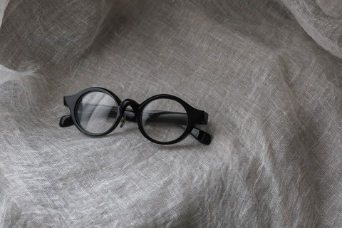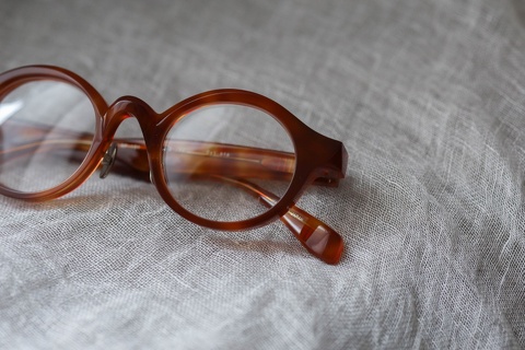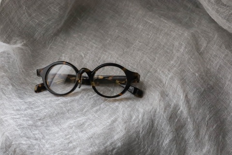 基本のカタチはラウンド型。特徴的なブリッジと平面、そしてちょっとシャープなエッジが効いたラウンド型のデザインです。クラシックなイメージとモダンが共存した不思議な世界観です。程よい厚みと大きさも相まって、特に、冬にかけたくなる眼鏡。ころんとしたデザインが厚みのあるお洋服とベストなバランスです。サイズ感は男性・女性問わずかけていただきやすいですが、テンプルの長さが長めのため、お顔の小さい方は注意が必要です。