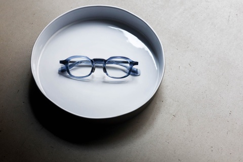 黒髪で上品な佇まい、シンプルなものが映える素敵な方。静かにかけていかれましたが、このRF-200の形が気になる。。。黒髪のロングで肌の色が白いかただったので、ブラックの色がとても映えていたのですが、このブルーが持つほのかな透明感が出る美しさに気づかれ、当初黒っぽいものを選ばれるかなと思いましたが、この色に決めていただきました。発色の良いブルーだけれど、肌に乗せた途端に溶けるように馴染む色合い。不思議と他の色と喧嘩もせずトータルスタイリングしやすいカラーです。ちょっとした冒険をしていただいたのがとても嬉しかったですね。