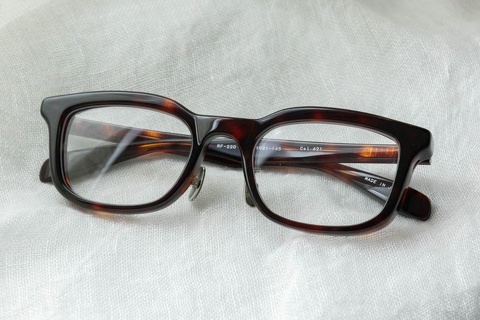 先ほどご紹介した「RF-037」の兄弟型です。いわゆる”黒縁”。かけるかどうか別にして、興味のある方が多いフレームだと思います。黒縁のカテゴリーに関して言えば、イベント毎に変わってくるんですよね。今回はなんとなく「RF-037」が支持されるのでは?と勝手に思っています。丸い形の「RF-038」のブラックも人気なのですが、もう少し軽い感じのするこのタイプがいいのではないかなあと思っていて、おすすめしてみたいと思っています。シンプルだけど、シンプルではない。この絶妙な大きさがどうスタイリングに左右していくのか。面白いですね。