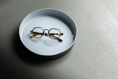 やはり外せないバラフ柄。いわゆるベッコウ柄と言われるものです。大人の女性、まずこのベッコウ柄をかけたくなる気持ちもよくわかります。肌をくすませず、黒ほど重くなく、スタイリングしやすいカラー。そしてこの厚みが絶妙でありながら、四角でもない、丸でもない多角形は、意外にかけやすいと思っていただける形でした。眉との相性もとりやすいため、ぜひ一度かけてみていただきたいモデルとカラーです。