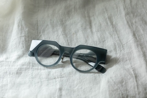 他にはないカラーがお好きな方はこの、くすみブルーがおすすめ。肌に透明感が出て、レンズカラーや、調光レンズを入れてサングラスにしてもいいですね。夏ももちろんあいますが、寒い時期もこの表現力高いフレームですので重ね着スタイルにも素敵です。夏な白Tシャツだけでも可愛いのではないでしょうか?今年トレンドのデニムとも良さそうですね〜。
