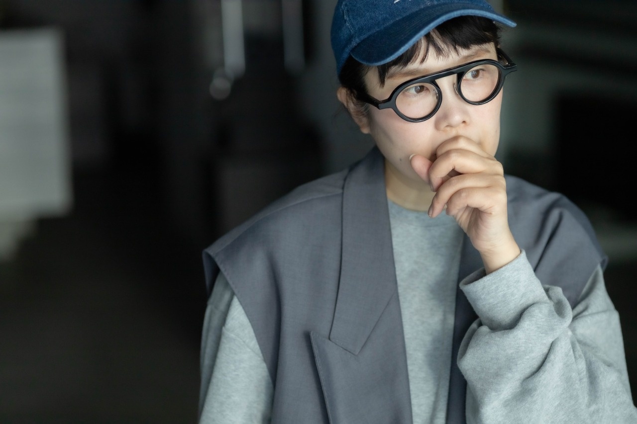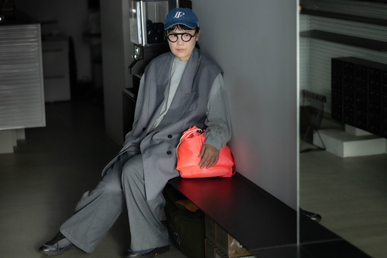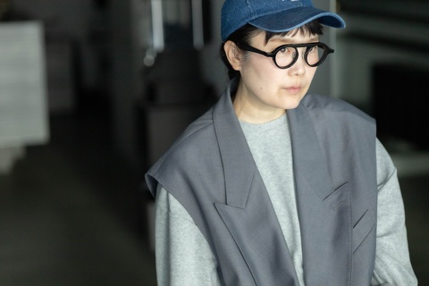 グレーのワントーンは、黒やブラウンなどに比べ、カジュアル見えしやすいため、ドレスアップするようなアクセサリーをつけたり、ぼやけないように締め色を使います。特に眼鏡は小さいものではありますが、お顔に乗せるため、締め色にピッタリ。黒など濃い色でしっかりと締めながら、カタチで遊ぶと大人なカジュアルスタイルが完成します。