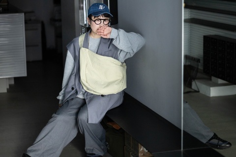グレーの中に、レモンイエローのようなグリーンのチェックバッグをワンポイントに。一気に爽やかになりますね。斜めがけすることで、ゆるっとしたお洋服を華やかに締めてくれます。