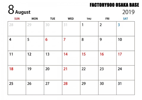 以下にOSAKA BASE の8月の営業スケジュールをご用意しました。お間違えの無いようお願いいたします。