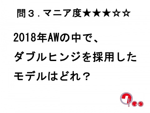 さて、今日の内容は2019年AWの展示会直前ということもあり、昨年の2018年AWモデルをまとめてクイズを作って参りました。それでは行ってみましょう。