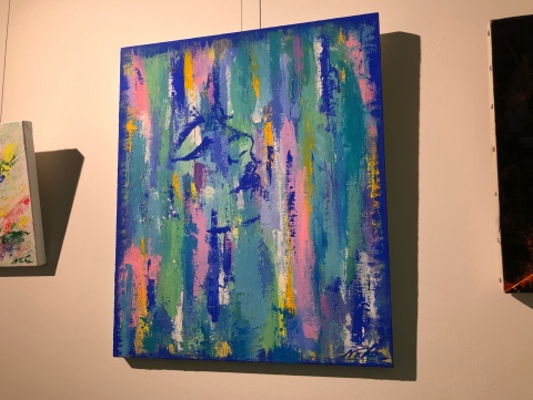 「生きている中で生まれる人間のさまざまな感情や、大好きな舞台を観劇した際の感動や湧き上がる気持ちなど、"目に見えないもの"を色で表現しています。一つのテーマを、色を重ねることにより様々な角度から掘り下げ、キャンバスの中に人生を描いています。」