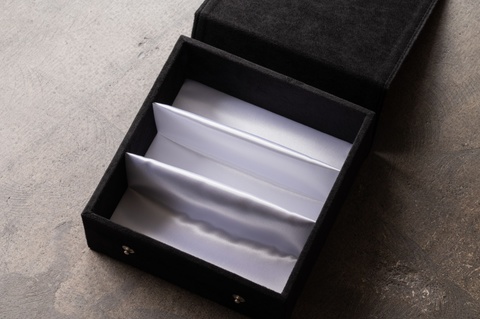 ご存知、FACTORY900のメガネは立体的なデザインということもあり、一般的なケース入らないことも多く、今回の3本入りのケースもサイズ感を考慮し、高さも58mm(内径)と販売用の8本コレクションボックスと同じ寸法になっています。