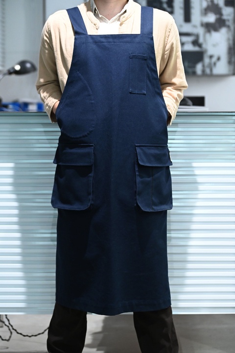 本来こちらのエプロンは、福井本社、直営店スタッフの作業着として使用していいることもあり、生地は強度・耐久性に優れた帆布を使用し、より実用的でクラフト感を肌で感じていただける仕上がりになりました。