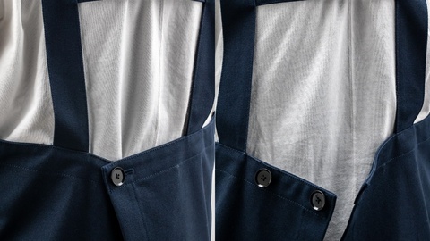 肩紐と腰紐はボタンを止める位置でサイズ調節が可能となります。