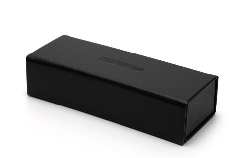 サイズ感としては、今まで直営店でメガネをお求めの際にお付けしていた、折り畳み式のサービスケースよりも若干大きくなっており、基本的にはFACTORY900(大文字シリーズ)が入るサイズ感となります。(「FA-087」「FA-088」など一部のモデルは規格外となります)