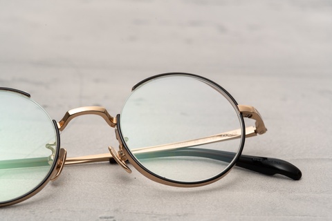 ご覧のように、クラシカルなデザインでは王道といえるラウンド型ですが、メタルリムの一部を切り離したアーティステックなデザインになります。ご存知FACTORY900には、ラウンド型にインナーリムを組み合わせ、リムを切り離した「RF-170」というモデルが存在しますが、青山のデザインスケッチには、すでにこの「YA-020」が描かれており、「RF-170番台」の原型となったモデルといっても過言ではありません。