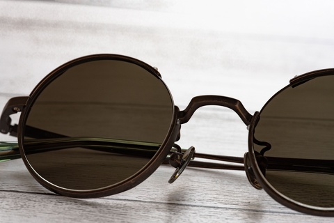 昨年末、ようやく発売開始となった「YOSHINORI AOYAMA」「YA-020」に、レンズメーカーHOYAから発売の可視光線調光レンズ”SENSITY DARK”ダークブラウン”の組み合わせになります。近年では1年を通して人気の調光レンズ、TOKYO BASEの人気は”ダークグリーン”になりますが、今回はフレームカラーの「col.04」(ダメージブラウン)に合わせ”ダークブラウン”をお選びいただきました。