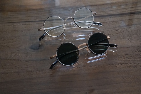 ご覧のように、写真では目の表情が伺える濃度になりますが、撮影した場所が日陰ということもあり、本来日差しのもとではさらに濃度は濃くなります。レンズが発色したことでラウンドシェイプが際立ち、どこかモードな雰囲気も漂います。きれいめなシンプルな装いにはもちろん、レザージャケットなど、ハードなアウターに合わせてみるのもアリではないでしょうか。