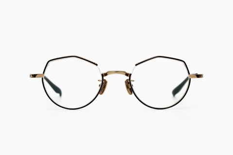 1stモデル同様、レンズを支えるメタルリムの一部を切り離した特徴的なデザイン。特に「YA-022」は、直線的なトップリムがよりアーティステックな印象を与えます。気になるサイズ感ですが、1stモデルの2型と同じ43mm・鼻幅22mmとやや小ぶりです。しかし、特徴的なレンズシェイプということもあり、同じサイズ感のラウンド型よりも大きく感じます。