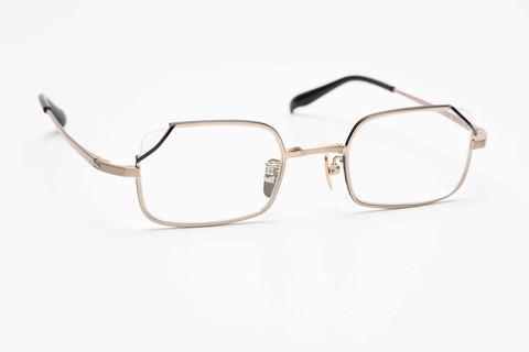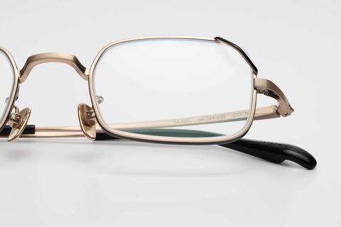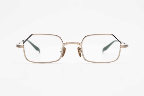 先にご紹介した「YA-030」に続き、いわゆる玉型違いとなる「YA-031」は同じテーマに基づき、リムの一部を折り曲げたスクエア型になります。ラウンド型の玉型違いとしてスクエア型を選択するところから今の時代感を意識したデザインといえるのではないでしょうか。