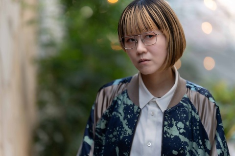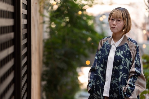 スクエア型にカラーはシルバーということで、先程の「YA-041」よりもさらに智的に感じられる「YA-042」ですが、アウターにスカジャンをチョイスしたことでカジュアルダウンし、一気に抜け感のあるスタイリングが完成しました。智的でクールな表情とカジュアルでポップな洋服との組み合わせによりコーディネートにもメリハリが生まれ、スタイリングの幅もより広がります。
