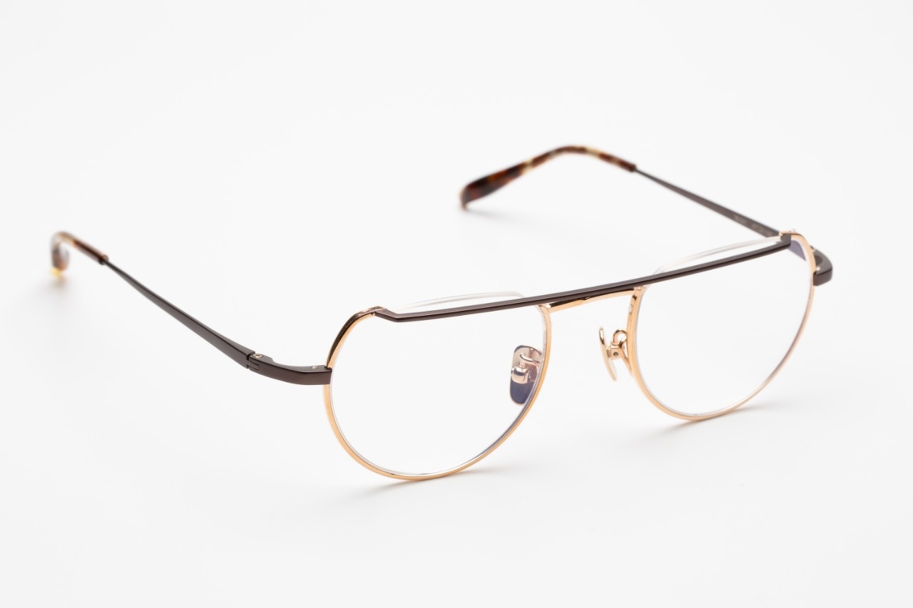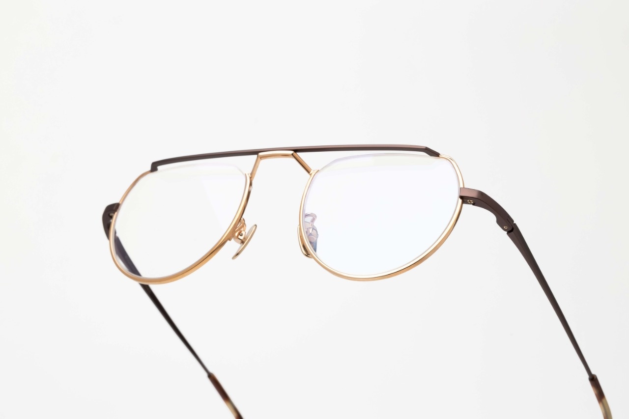 YOSHINORI AOYAMAではお馴染みとなったナイロール構造を用いたハイブリッジデザイン。近年は他ブランドでもハイブリッジやツーブリッジデザインのメタルフレームを多数見かけますが、YOSHINORI AOYAMらしい立体的なフォルムはこの「YA-041」「YA-042」でもしっかりと表現されています。