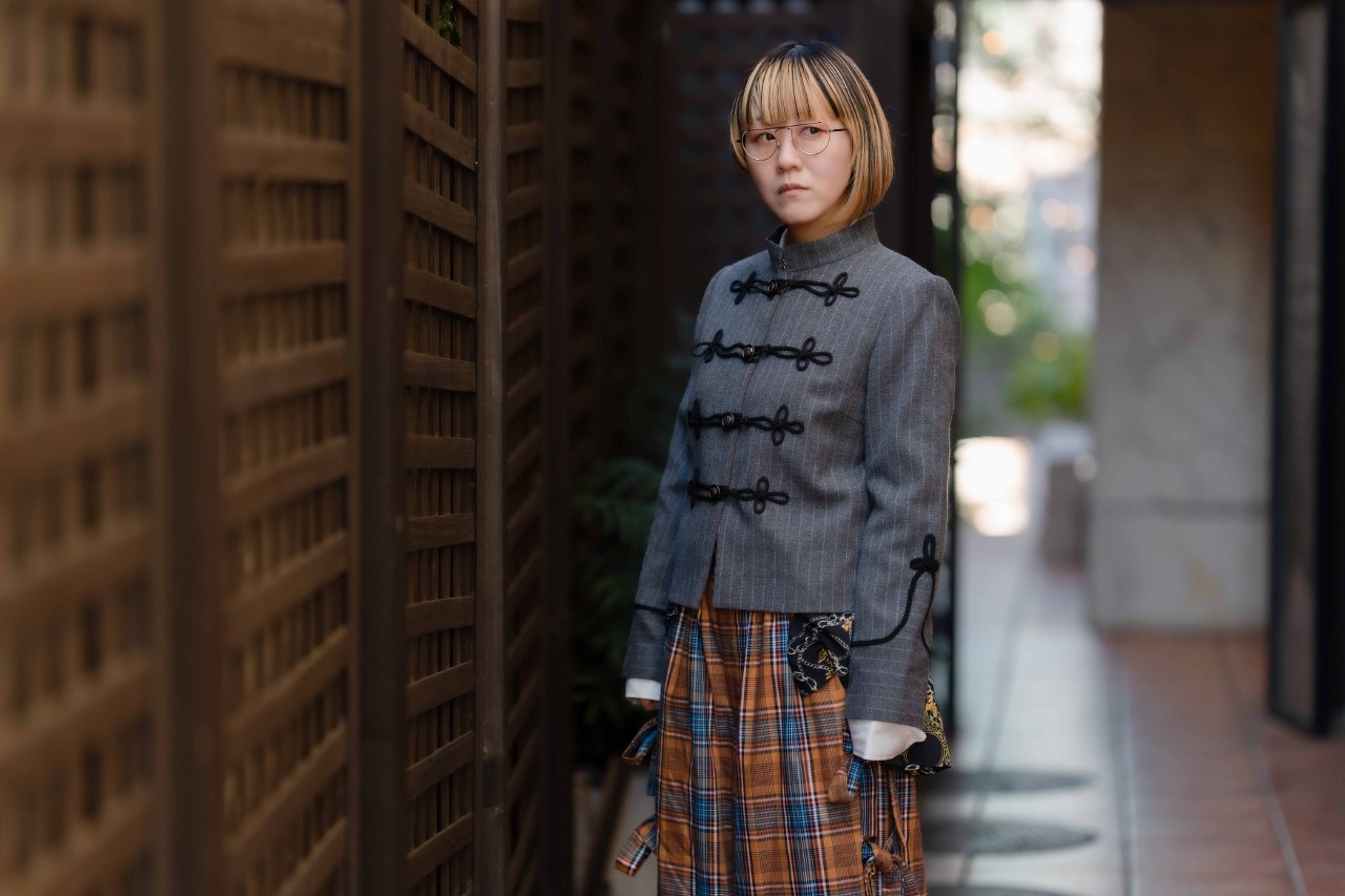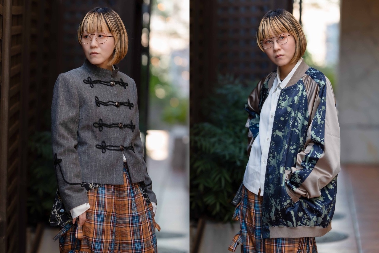 2025AW Collectionのスタイルサンプルでも触れたように、メタルフレームの掛け比べということでスタイリングにも気をつけたいところですが、今回はジャケットとスカジャンと2つの異なるアウターで印象の違いも見ながら比較してみたいと思います。