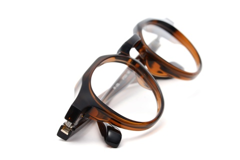 一見オーソドックスなクラシックフレームに見えますが、フロントリムに厚みの強弱をつけることで、見る角度によって程好いアクセントを与えます。普通に見えて他にはない、細すぎずゴツ過ぎず、そのバランスの良さが人気のヒミツではないでしょうか。
