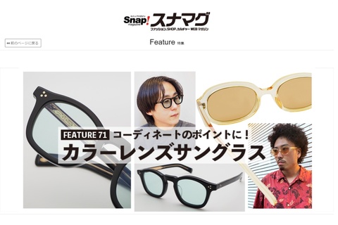 ファッション系ウェブマガジン「スナップマガジン」さんに「コーディネートのポイントに! カラーレンズサングラス」と称し、特集で取り上げていただきました。