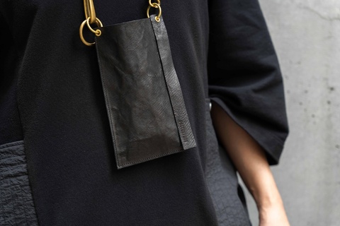 ご覧のように簡易的とはいえ一時的にメガネが収納できるほか、iPhoneなど小物が収納できるサコッシュのような役割も果たします。